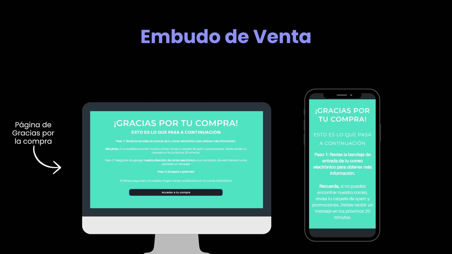 Embudo de ventas: Página de ventas + página de pago + página de gracias.