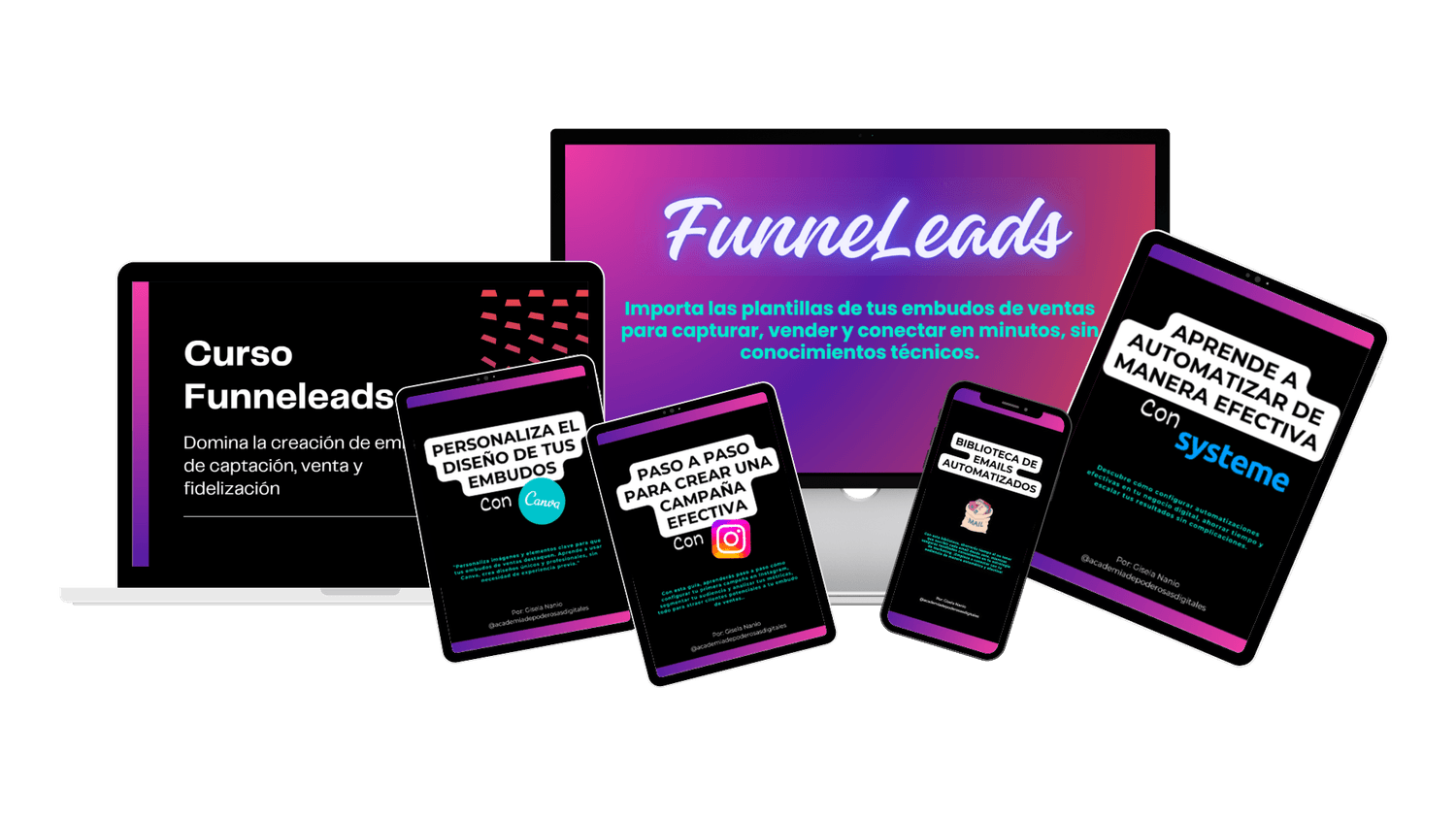 El sistema que está transformando la forma de vender online es el embudo de ventas automatizado. Y no, no necesitas ser una experta ni tener experiencia previa para implementar uno. Con Funneleads, tendrás embudos de ventas listos para empezar a captar clientes y aumentar tus ingresos en muy poco tiempo.